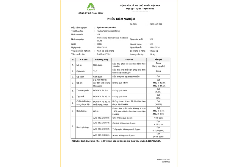 | Bạch thược (Paeoniflorin > 0,1%) |
